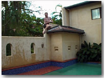 | We headed back to the Hotel for a dip in the pool.. from the wall.. Nice pose from the Ando man. | ||