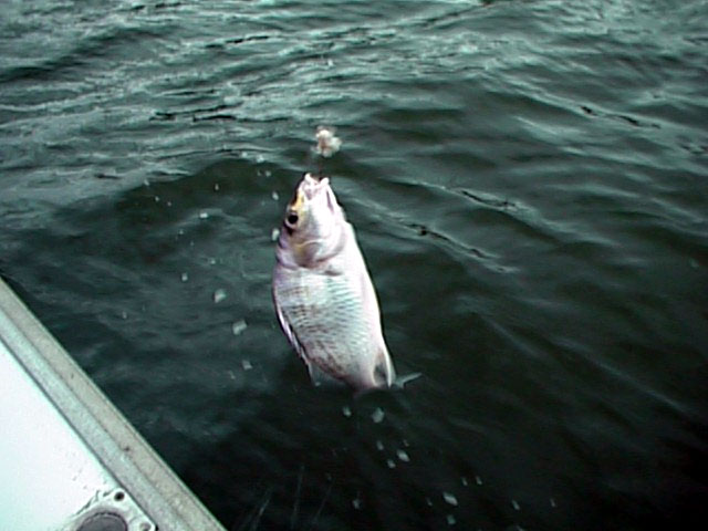 | Well here's the first fish of the evening, a Grunter or Javelin fish. Not worth keeping and he ended up fighting to see another day. | ||